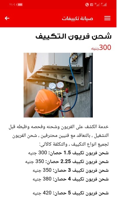 فنعمل بنظام عقود سنويه اذا اراد العميل منا ذالك وايضا نقوم بصيانة التكييفات المركزيه وتنظيف التكييفات بجميع انواعها وكذك صيانة التكييفات الاسبليت والكاسيت والشيلروالباكدج والتكييف الشباك وتنظيف النكيفات دون الحاجة الي نقلها خارج المنزل وصيانتها واعادة تعبئه الفريون لجميع التكييفات وتبديل القطع التالفه من اجهزه التكييف بقطع اخري اصلية